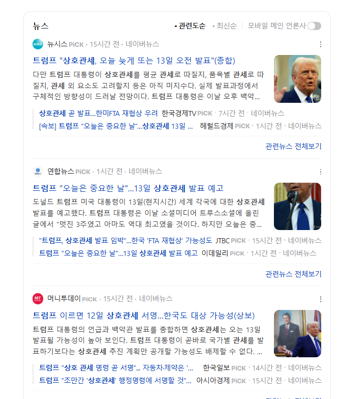 상호관세란, "다른나라가 부과하는 관세만큼 동일하게 부과한다는 내용" 입니다.